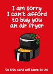 Text reads: "I am sorry I can't afford to buy you an air fryer so this card will have to do."