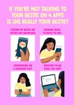 "If you’re not talking to your bestie on 4 apps is she really your bestie?" Then, next to each of the 4 images: Texting my bestie an entire day download. Opening Insta to reply to her. Commenting on a Facebook post. Replying to an email she sent."