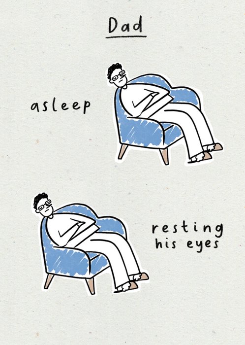 Featuring two simple illustrations of a Dad resting in an armchair, with text next to each one. The illustrations look exactly the same but they are showing Dad asleep and resting his eyes.