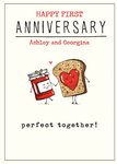 Text reads: "Happy First Anniversary Ashley and Georgina. Perfect Together"