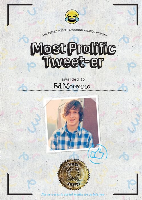 Funny Most Prolific Tweeter Emoticon Card