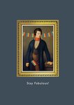 Front of card: Featuring a classical portrait playfully adorned with rainbow Pride bunting, set against a minimalist blue background, with black typography below.