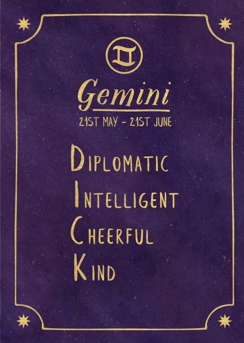 Funny rude horoscope birthday card - Gemini