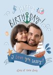 Front of Card: Cute photo upload card with sea themed illustration. The card reads: "Happy birthday, I love you daddy, lots of love Suzy". Editable text: "Lots of love Suzy".