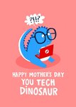 Funny Tech Dinosaur Illustrated Lucy Maggie Mother's Day Card