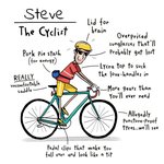 Humour quotes pointing towards cartoon drawing of a cyclist. Personalised name