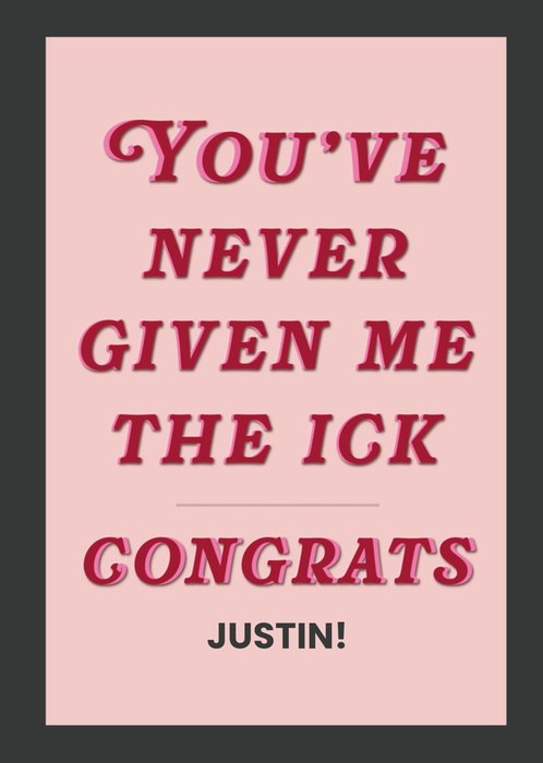 Funny You've Never Given Me The Ick Typography Valentine's Day Card