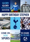 Text reads: "Happy birthday Stephen. Glory glory Tottenham Hotspur. Come on you Spurs. To dare is to do." 'Happy birthday Stephen' can be personalised!