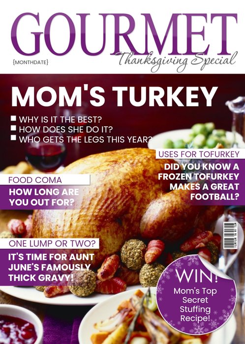 Gourmet Mom's Turkey Spoof Magazine Happy Thanksgiving Card