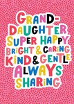 "Grand-daughter. Super happy. Bright & caring. Kind & gentle. Always sharing."