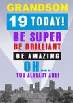 Grandson 19 Today Be Super Be Brilliant Oh You Already Are Birthday Card
