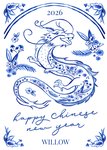 Front of card: Featuring an illustration of a Chinese dragon. Text reads: "2026 happy Chinese New Year Willow". '2026' and 'Willow' can be personalised!