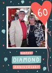 A modern Anniversary design featuring a central photo upload framed by painterly style confetti, hearts, stars and diamonds. A large heart containing '60' sits to one side of the photo and a hand-drawn message sits below. The design is finished with a navy background.