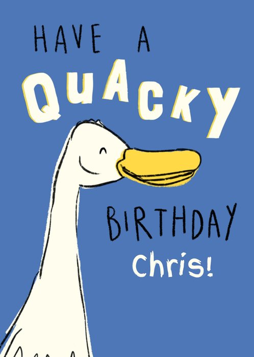 "Have a Quacky Birthday Chris!". 'Chris!' can be personalised!