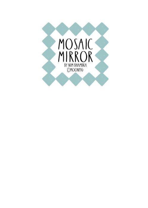 Front of card: Featuring a diamond mosaic pattern around the edge of the card with large capitalised typography in the centre all on a green background.