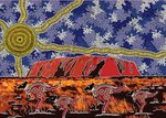 Illustration of a landscape done in the style Aboriginal art patterns