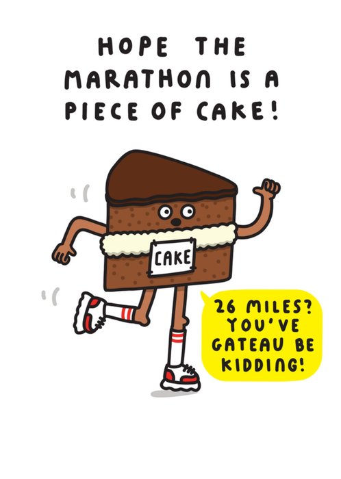 "Hope the marathon is a piece of cake! 26 miles? You've gateau be kidding!"
