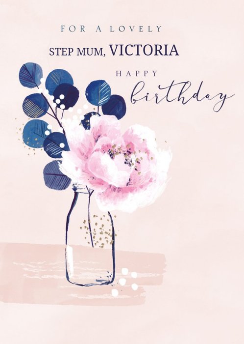Hotchpotch Illustrated Floral Birthday Step Mother Traditional Pink Card