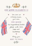 "HGH Queen Elizabeth II you were no ordinary Queen, your were our queen Our inspirational leader, Filled with love, hope and leadership. May you rest in peace."