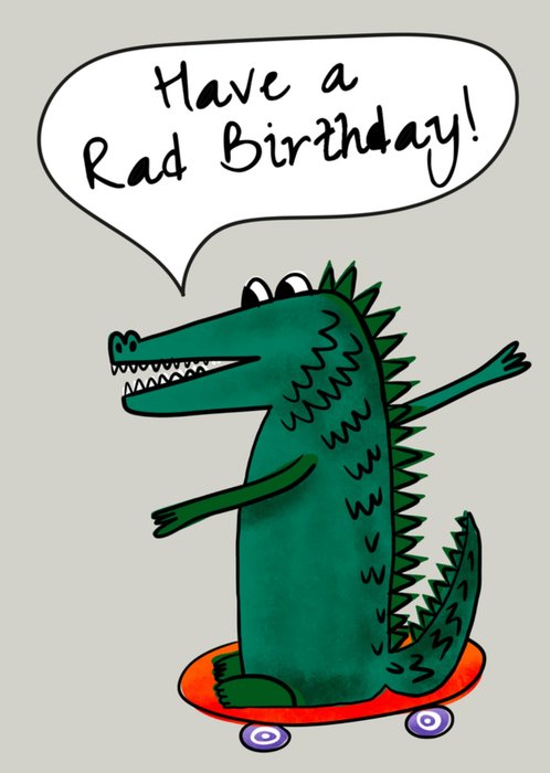 Humorous Skateboarding Crocodile Birthday Card
