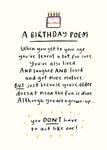 Text reads: "A birthday poem. When you get to your age you've also lived and laughed and loved and got more mature. But just because you're older doesn't mean the fun is done. Although you are a grown-up...you don't have to act like one!"