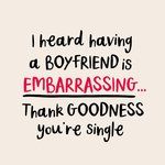 "I heard having a boyfriend is embarrassing... thank goodness you’re single".