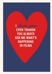 “I love you even though you always ask me what’s happening in films”.