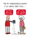 "To my gorgeous wife! I'll love you till...", "my nuts are on the floor!" and "my tits are round my ankles!". 'To my gorgeous wife! I'll love you till...' can be personalised!