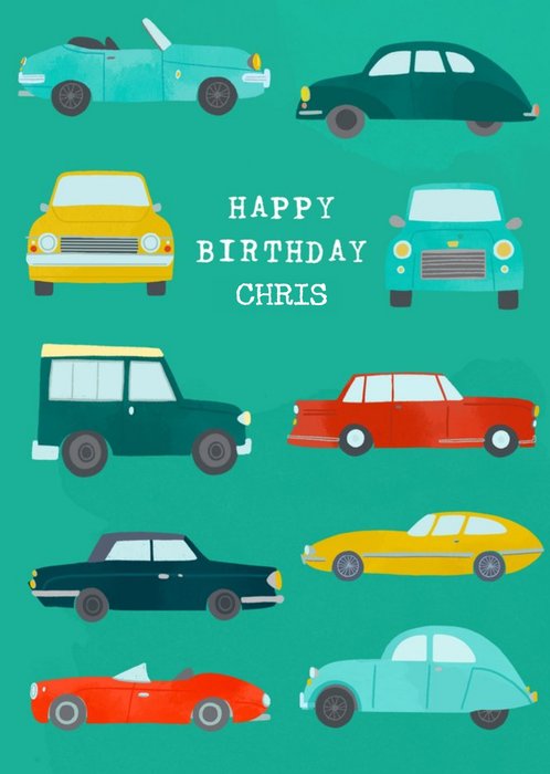 Illustrated Cars Happy Birthday Card