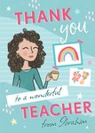 Illustrated Character Thank You To A Wonderful Teacher Card