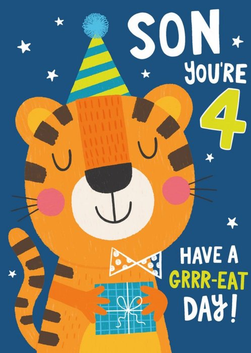 Illustrated Cute Dinosaur Son Youre 4 Today Birthday Card