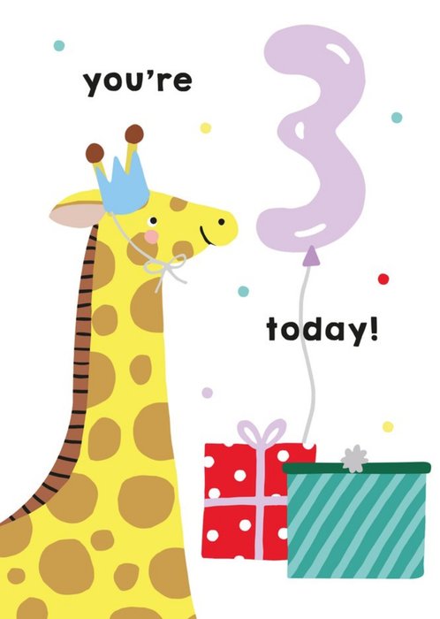 Illustrated Cute Giraffe Party Hat Youre 3 Today Birthday Card