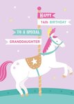Illustrated Cute Horse Carousel Granddaughter Happy 14th Birthday To A Special Granddaughter Card