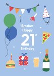 Illustrated Cute Party Balloons Brother Happy 21st Birthday Card