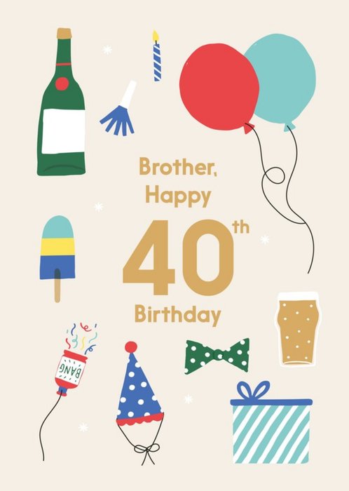 Illustrated Cute Party Balloons Brother Happy 40th Birthday Card