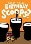 Illustration of 3 glasses of guinness and a pint with a birthday candle in