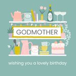 Illustrated Kitchen Shelves Champagne Birthday Cake Godmother Birthday Card