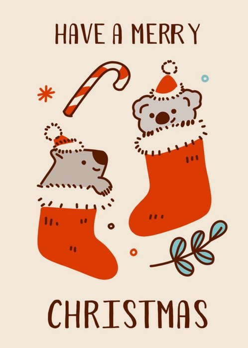 Illustrated Koalas in Stockings Christmas Card