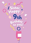 Illustrated Modern Design Abstract Party Popper Sister Happy 9th Birthday To You
