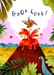 Illustrated Pterodactyl Volcano Prehistoric Good Luck Card