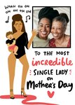 The card reads: "Woah oh oh oh oh oh oh, to the most incredible single lady on mothers day".