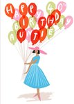 Illustration Bunch of Balloons Held By A Lady Happy 40th Birthday Auntie