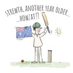 Illustration Of A Cricketer Holding Up An Australian Flag Strewth Another Year Older Birthday Card