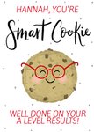 "Hannah, you're one Smart Cookie. Well done on your A Level results!". 'Hannah, you're' and 'Well done on your A Level results!' can be personalised!