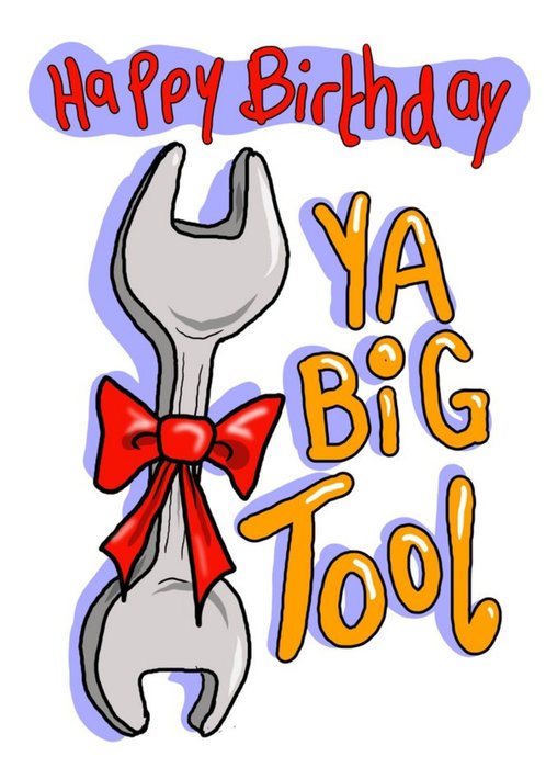 Illustration Of A Spanner With A Bow Tie And Vibrant Typography Funny Pun Ya Big Tool Birthday Card