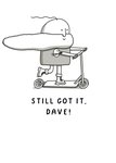 Front of card: Still Got It! Thinking Of You Card Illustration of an elderly man on a scooter. Text reads: "Still got it, Dave!". All text can be personalised!