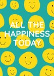 Front of card: Yellow smiley faces pattern on a green background with large editable space to type your own message. Text reads:"All the happiness today. With customisable write your own message space.
