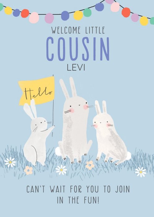 Join The Fun Illustrated Bunny Rabbits Cute New Baby Cousin Card