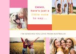 Text reads: "Emma, here's a little note to say... I'm sending you love from Australia". 'Emma' and 'I'm sending you love from Australia' can be personalised!