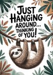 Just Hanging Around Thinking Of You Typographic Illustrated Sloth Card